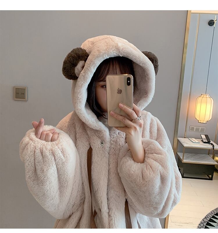 クマ 韓国風 長袖 コート 裏起毛