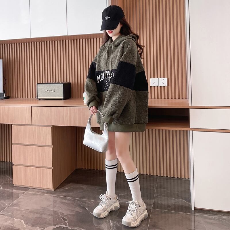 韓国風 長袖 パーカーワンピース