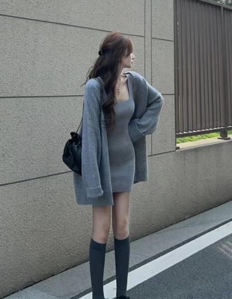 カーディガン ミニ ワンピース ドレス 台型スカート セット