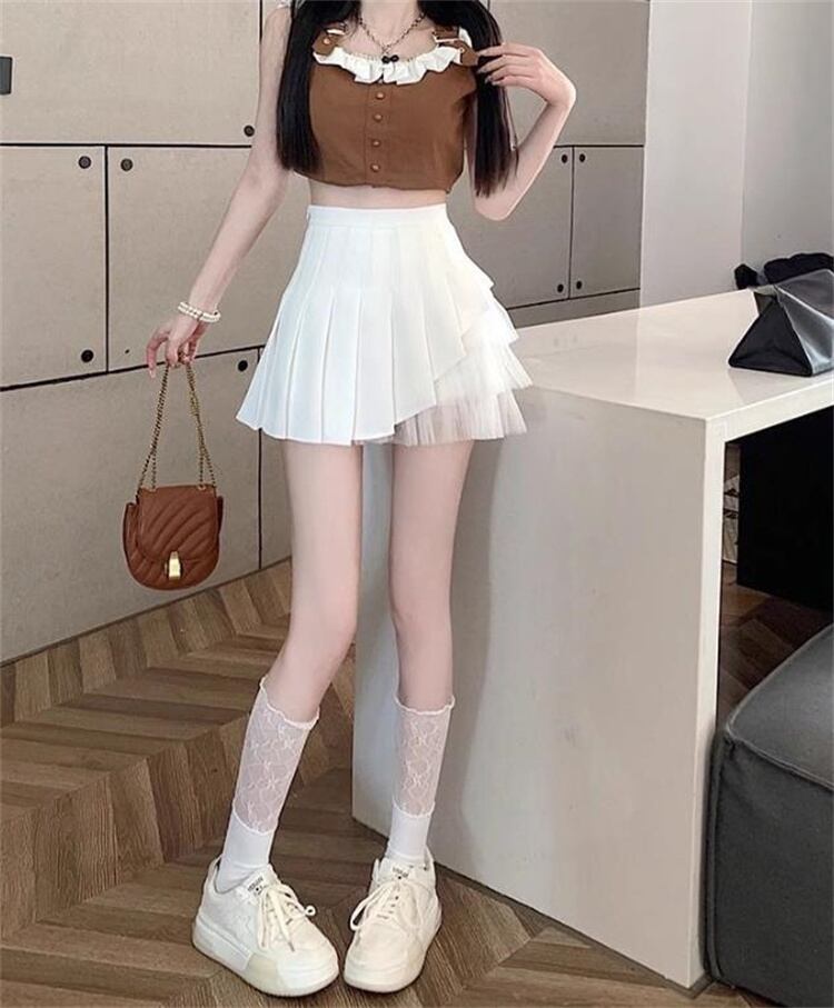 韓国ファッション スカート 2024春秋 夏 ミニスカート ハイウエスト プリーツ