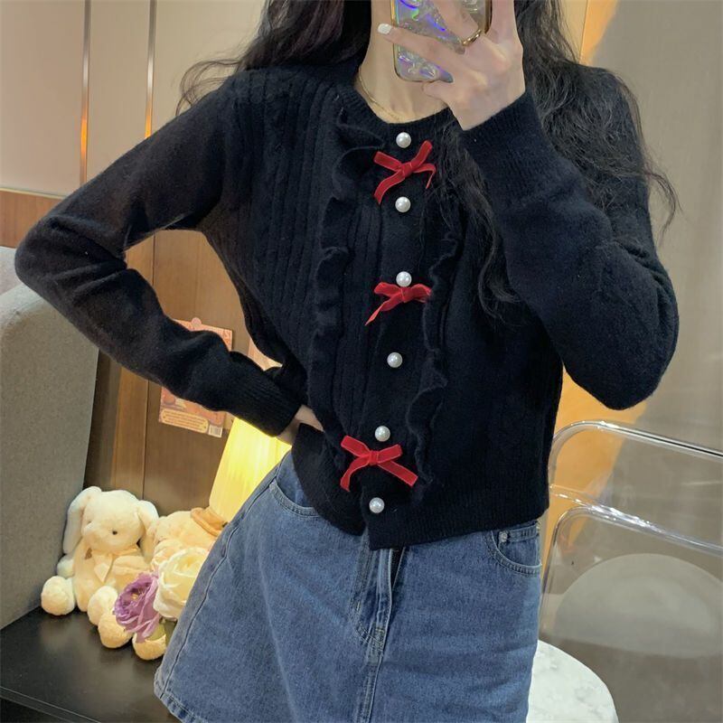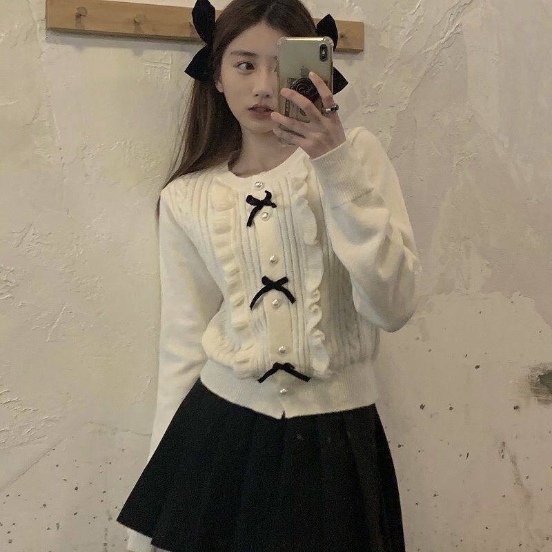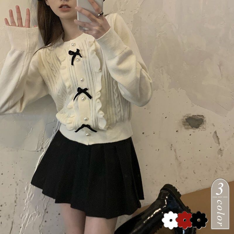 ニットトップス カーディガン リボン