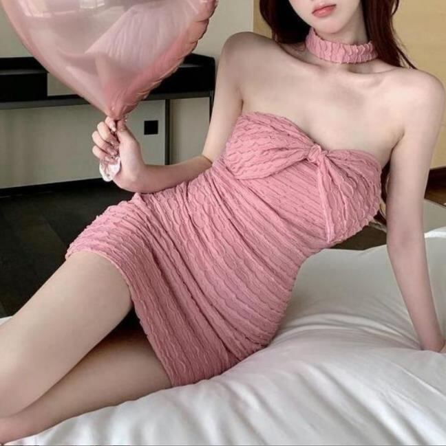 オフショル リボン ミニ ワンピース ドレス タイトスカート