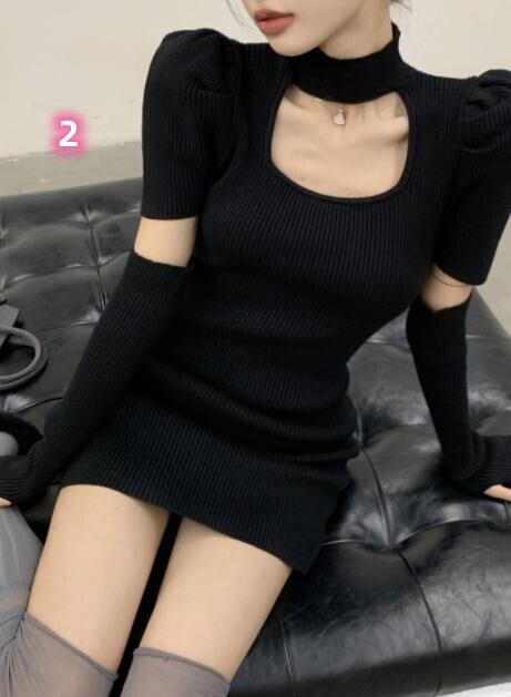 手袋付き 半袖 ニット ミニワンピース ドレス